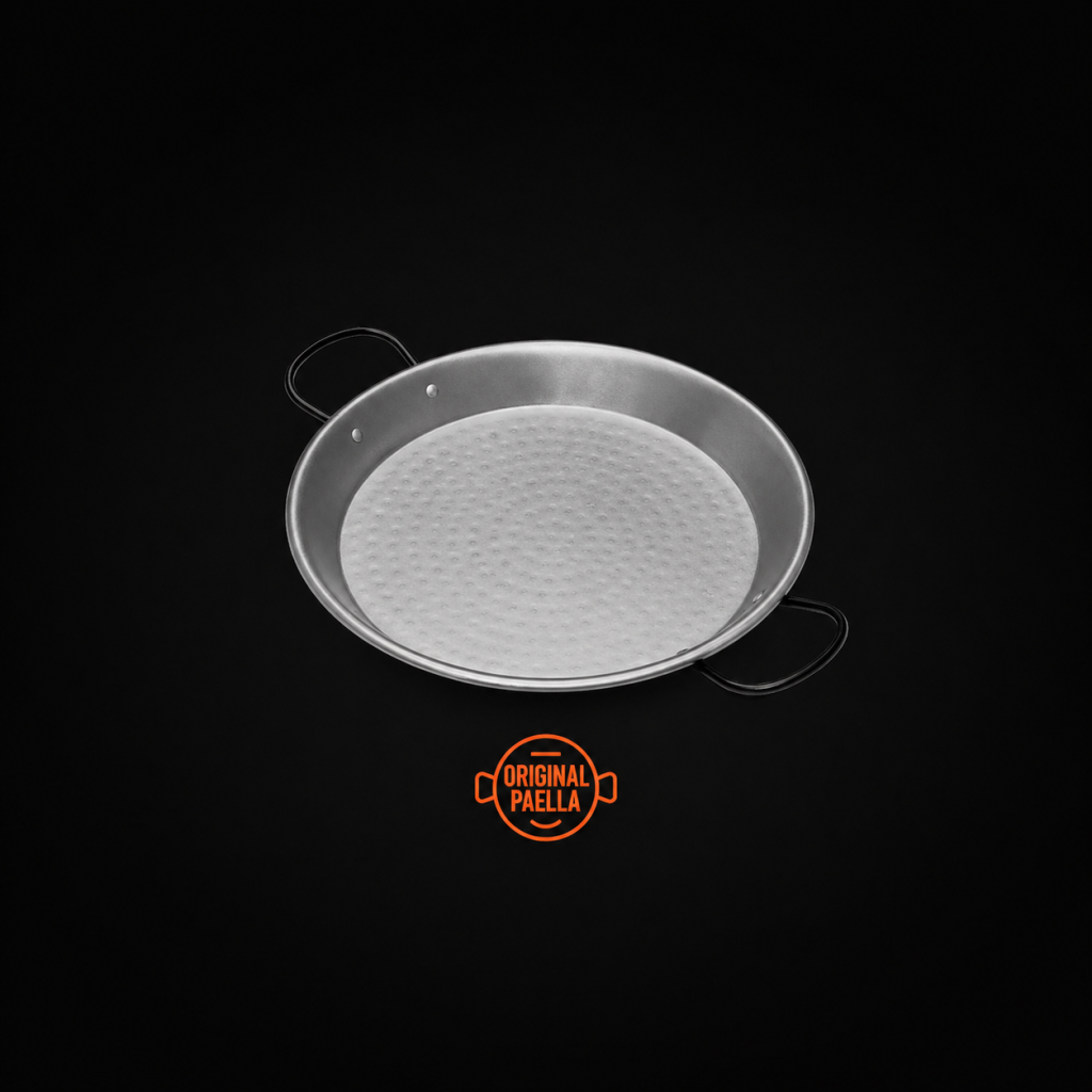 The polished steel paella pan, also called iron paella, is traditionally used for the preparation of Valencian paella. Made of steel, it distributes heat quickly and evenly. Its thickness gives it great rigidity and resistance. The bottom of the paella pan has small slits for better heat distribution.