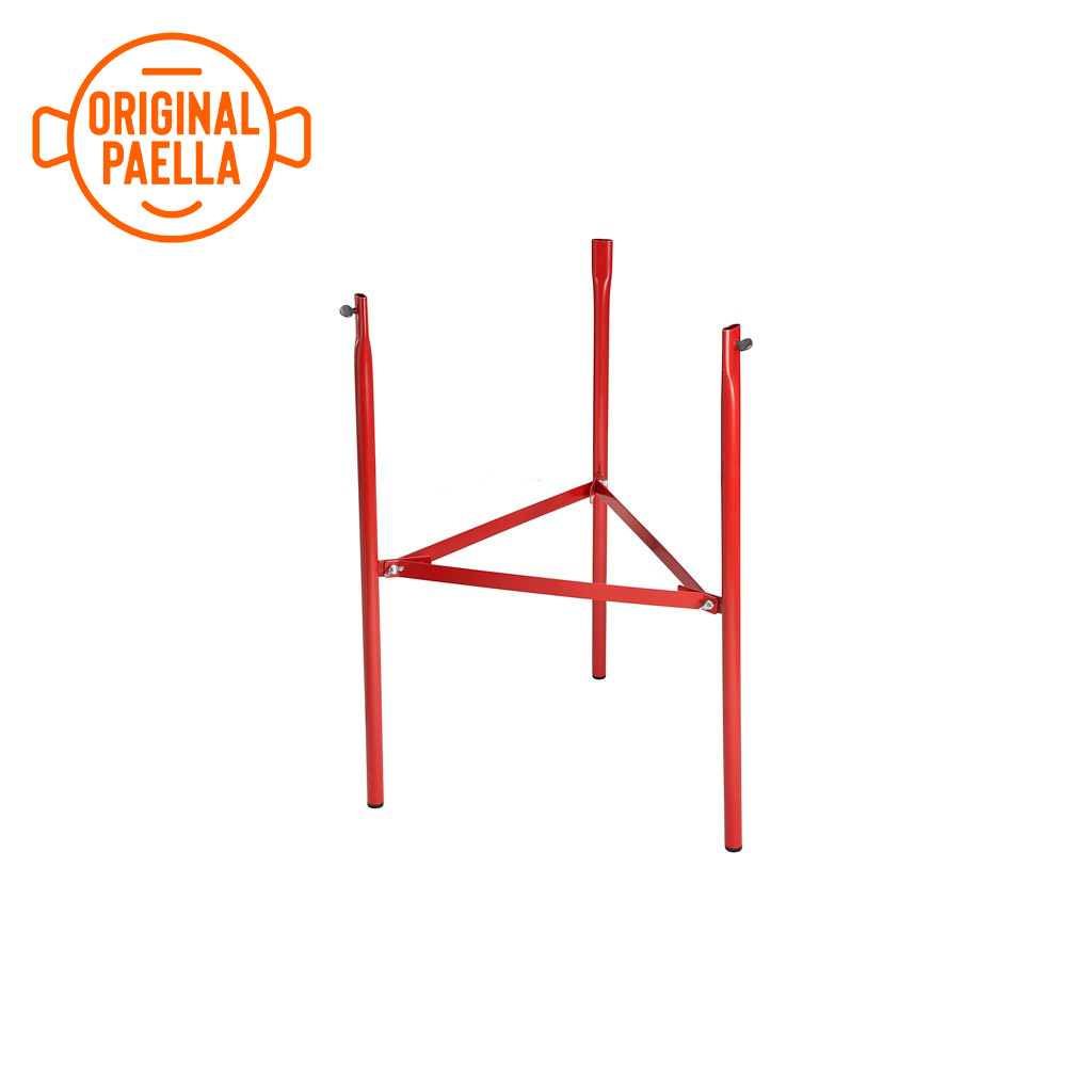 Atmospheric gas burner with integrated support (paellero ring) for outdoor use. The appliance is designed to heat containers or plates containing liquids or food. It comes equipped with x concentric circular burners, joined together by x fixed legs, which support the whole, ensure the stability of the appliance and serve as a support for the cooking containers (paellas, griddles, frying pans, roasters, etc.).