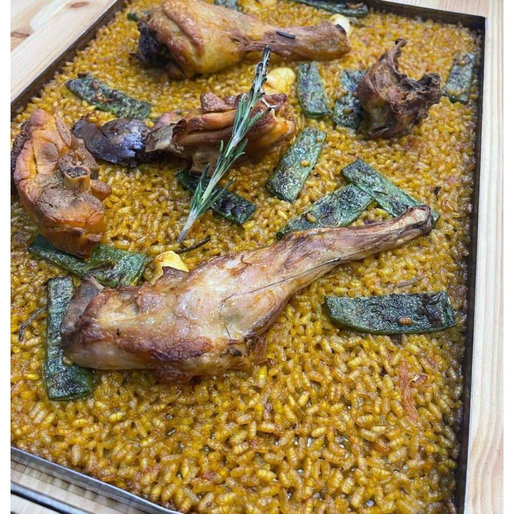 We will transfer the rice to the lluna, at this time, the rice must have a slight amount of broth to accommodate the grain and finish cooking. The broth should have a creamy/brothy texture. We will place the rice as flat as possible, after that, we distribute the elements that make up the rice and decoration. Those elements that do not require excess cooking can be added in the last minutes.